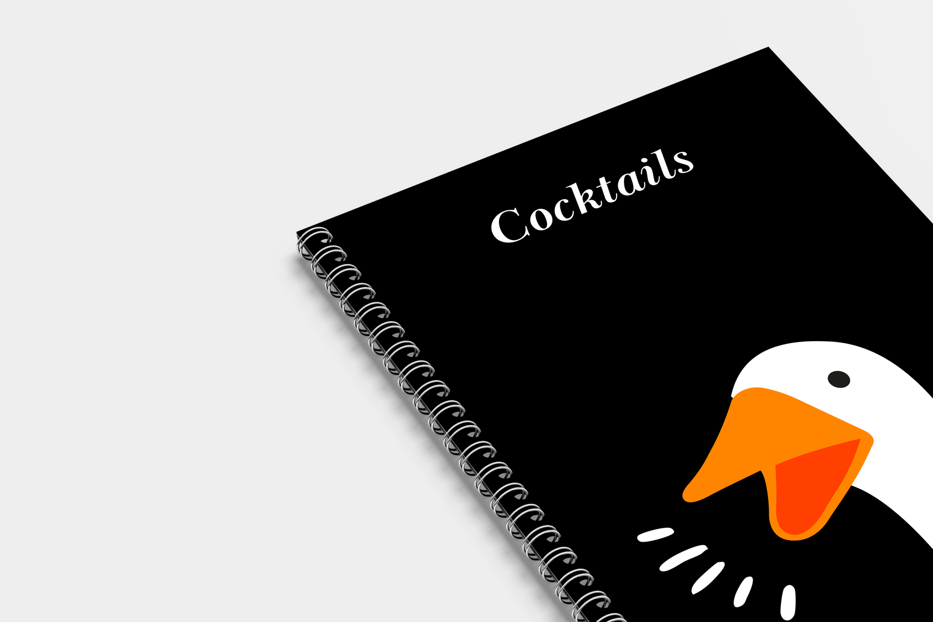 • Pila de tarjetas de presentación de La Mucca en color azul y blanco.